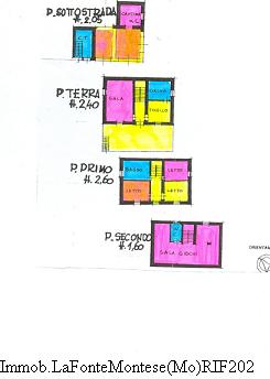 RIF. 202 MONTESE (MO) FRAZIONE CASTELLUCCIO: In piccola borgata nel verde, villino unifamiliare indipendente dispsosto su più livelli: P.T. ampio salone, cucina, tinello, ampio terrazzo; I° P. 3 camere, bano; II° P. sala giochi mansardata, bagno. Piano sottostrada garage, cantina, centrale termica. Riscaldamento autonomo.